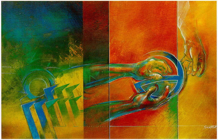 W tej interpretacji firmy HOBART talerz i misa symbolizują podstawowe potrzeby jedzenia i picia. Ludzkość otrzymała je dzięki nowoczesnej technologii. Człowiek i natura – każde na swój sposób – na tym zyskują. HOBart.