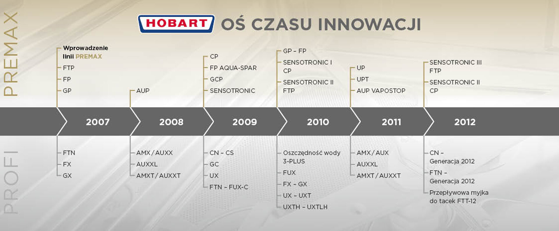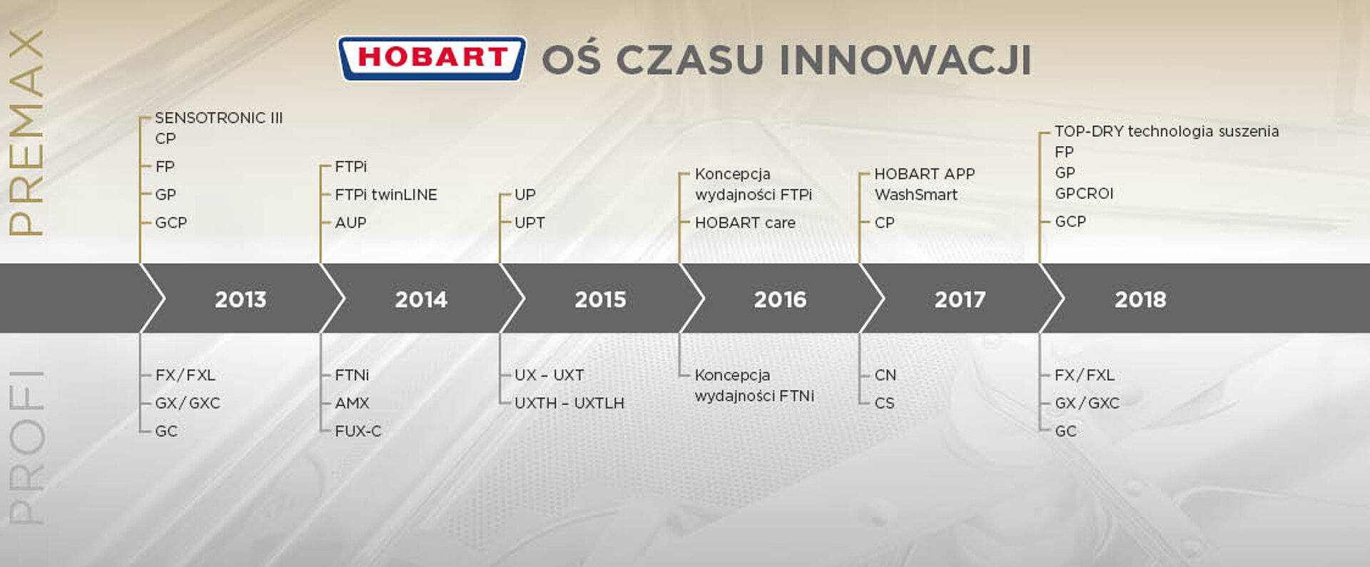 Już w minionych latach wyznaczaliśmy standardy dotyczące oszczędności i odzyskiwania energii i chcemy dalej być liderem technologicznym dzięki wprowadzaniu najnowszych innowacji. W porównaniu z konwencjonalnymi technologiami zmywarka z transportem taśmowym PREMAX oszczędza 50% wody, 30% energii i 80% detergentów, dzięki czemu stała się symbolem innowacyjnej mocy, wydajności ekonomicznej i świadomości ekologicznej.