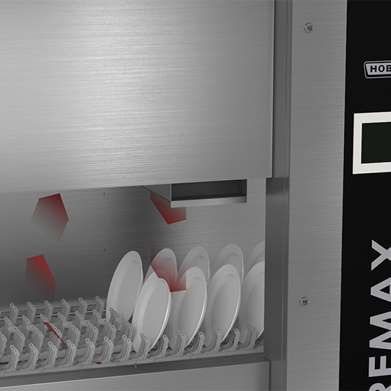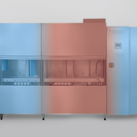 W tym systemie gorące strefy maszyny są zamknięte przez chłodniejsze strefy, np. wstępnego zmywania i suszenia. Efektem jest kurtyna termiczna zapewniająca wymianę powietrza wyłącznie wewnątrz urządzenia. Urządzenia PREMAX charakteryzują się specjalnym profilem temperaturowym i optymalnie wykorzystują tę zasadę.