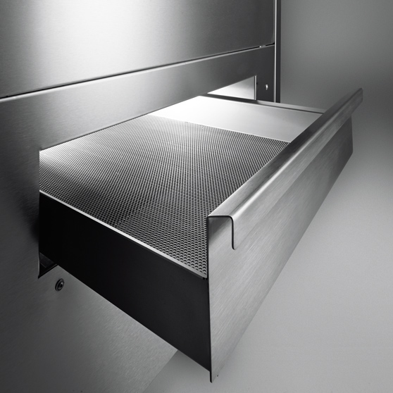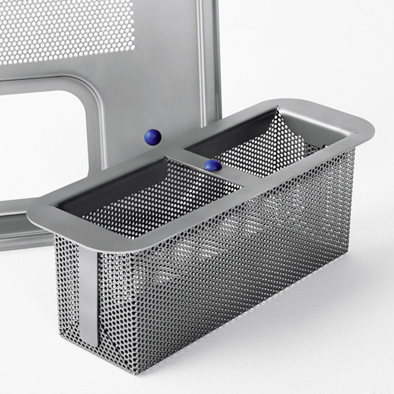 PONADTO: Duża objętość gromadzenia i wysoka krawędź zapobiegają przelewaniu się zanieczyszczeń. Szufladę z sitem można opcjonalnie zintegrować z powierzchnią lub przednią częścią sekcji załadunku urządzenia.