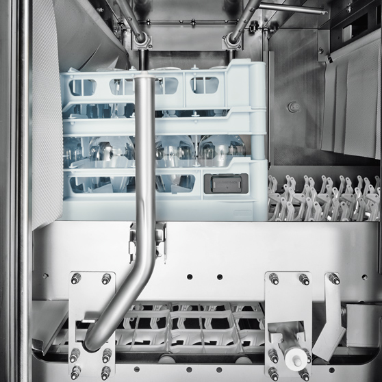 Inteligentne funkcje urządzenia wykrywają np. puste sekcje przenośnika lub określone zmywane artykuły i automatyczne dostosowują się do określonych okoliczności. W ten sposób pomagają zmniejszyć koszty eksploatacji i zaoszczędzić cenne zasoby.