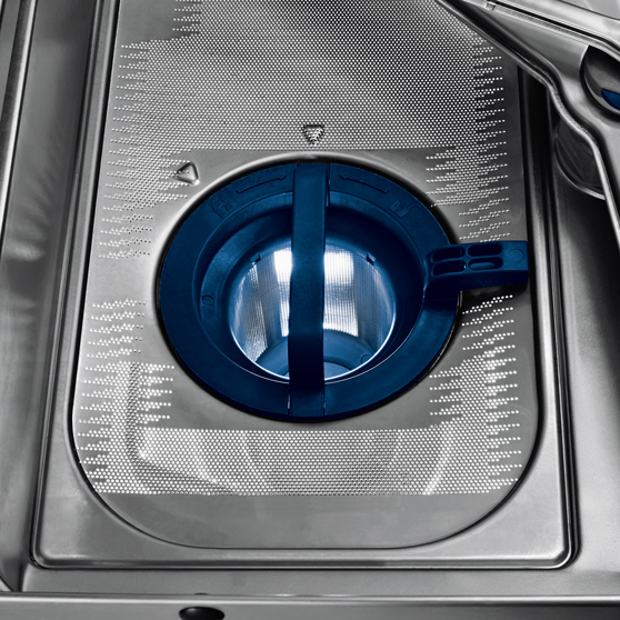 Filtrowanie pozostałości żywności zapobiega dostawaniu się do zmywarki do naczyń drobnych i dużych zanieczyszczeń, co mogłoby zanieczyścić roztwór do zmywania. Dzięki temu nie ma konieczności ciągłego opróżniania i napełniania świeżą wodą zbiornika mycia.