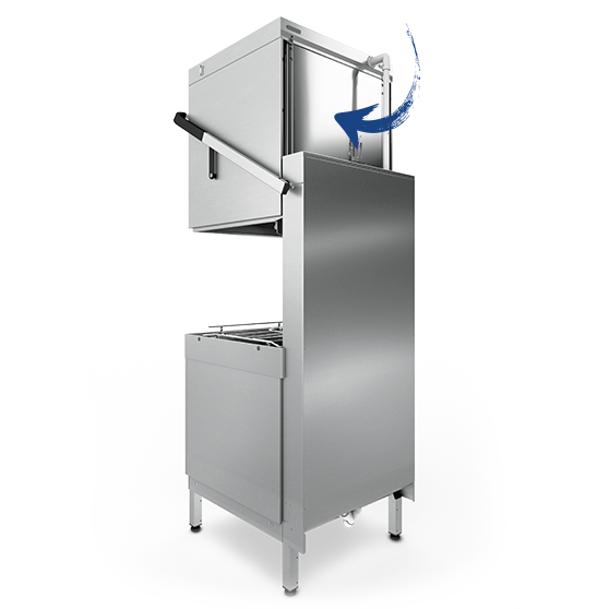 Prosta obsługa, oszczędność czasu i efektywność w kuchni są tak samo ważne jak redukcja zużycia energii, wody i środków czyszczących. Nowa zmywarka kapturowa do naczyń została opracowana z myślą o ograniczeniu kosztów eksploatacji poprzez minimalizację strat energii oraz jej odzysk z pary i pozostałej po zmywaniu wody. Zastosowana koncepcja czyszczenia i automatyczne usuwanie zanieczyszczeń zapewniają optymalny i higieniczny efekt zmywania i pozwalają obniżyć koszty dzięki wyeliminowaniu niektórych procesów wstępnego płukania i ograniczeniu czasu potrzebnego na wyczyszczenie urządzenia.